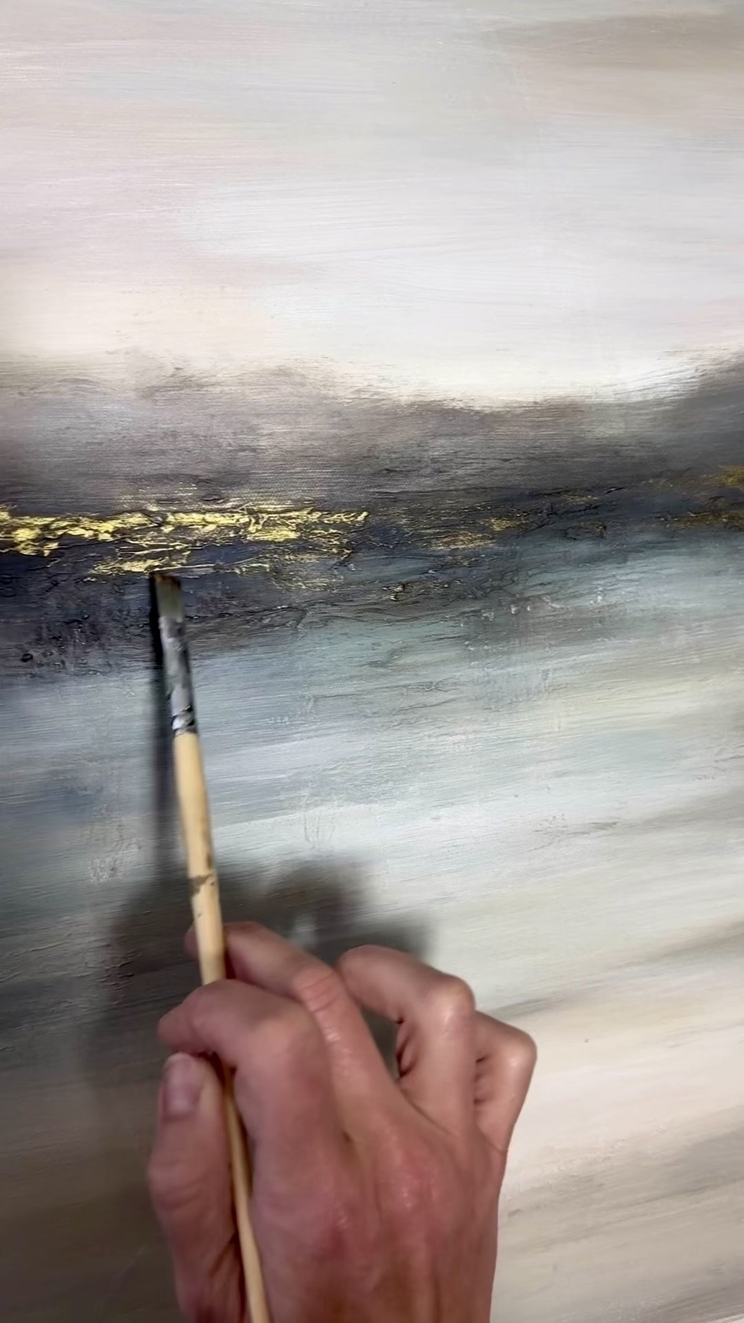 Inspired by the quiet majesty of Minnesota’s North Shore, Peaceful Reflections captures a tranquil moment where light meets water in perfect harmony. Layers of oil paint, luminous glazes, and textured mediums create an atmospheric depth that draws you in, while delicate touches of gold leaf catch the light and shimmer with movement.